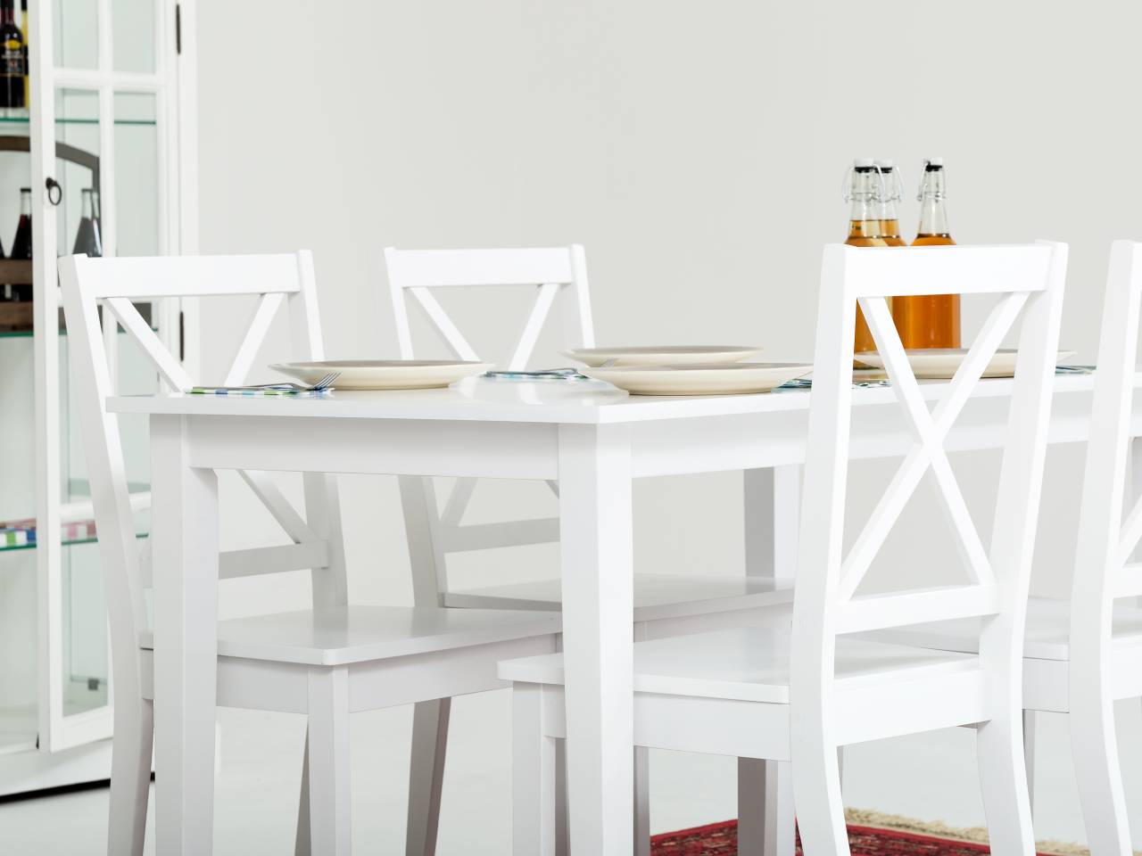 • Denna matgrupp som består av ett BARRINGTON bord och fyra stolar är som klippt och skuren för dig som söker ett mindre möblemang för köket eller sommarstugan. Möblernas klassiska formspråk, som påminner om klassisk svensk möbeltradition, och dess fräscha vita uppenbarelse bidrar till en idyllisk och mysig känsla som är svår att ta miste på. Tack vare heletens raka och stilrena kvalitéer passar matgruppen samtidigt utmärkt i det moderna och mer kliniskt inredda hemmiljöerna. Utan tvekan en mycket prisvärd och funktionell möbelgrupp helt enkelt.