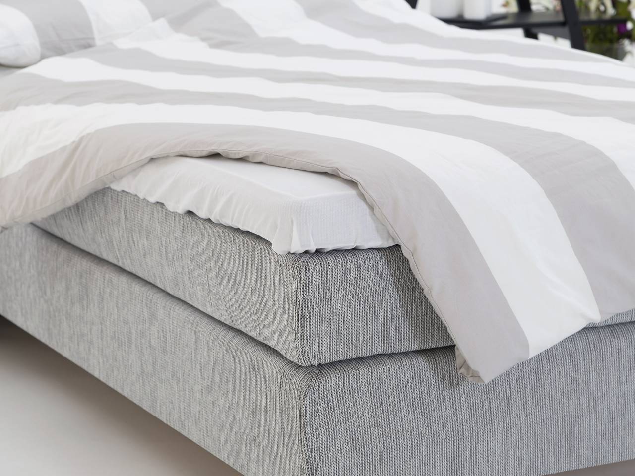 Vi tillbringar ungefär en tredjedel av våra liv i sängen. Att välja rätt säng är ett viktigt val vi bör lägga stor omsorg på. GRAND XL uppfyller definitivt kraven på både kvalitet och utseende. Det gråmelerade tyget är både väldigt slitstarkt och lättmatchat så att det ska passa in i just ditt sovrum. Lägg till en sänggavel och nackkuddar och du får en säng som är ett "statement piece" i ditt hem.