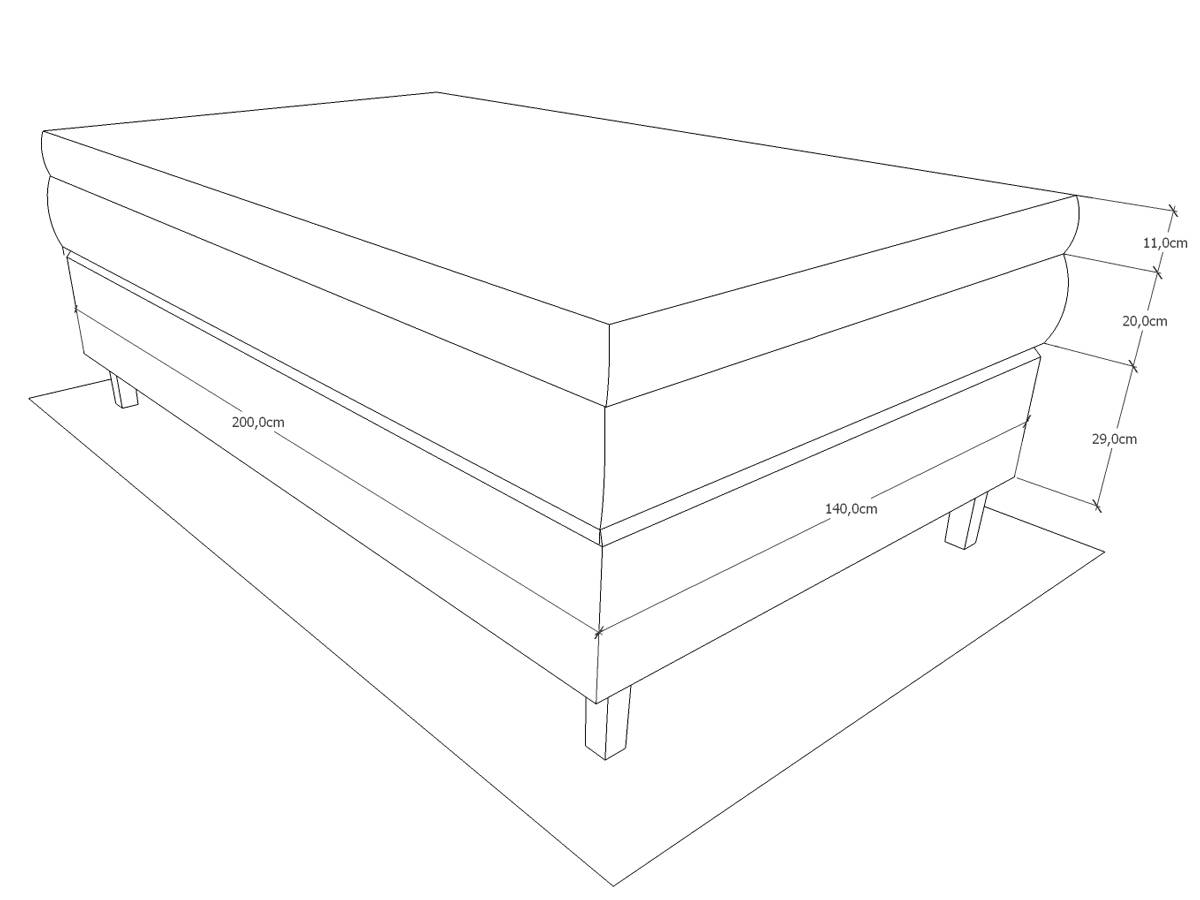 Resårbotten: Bonell, 125 fjädrar per m²av 2,2 mm tjock tråd, 29 cm hög.